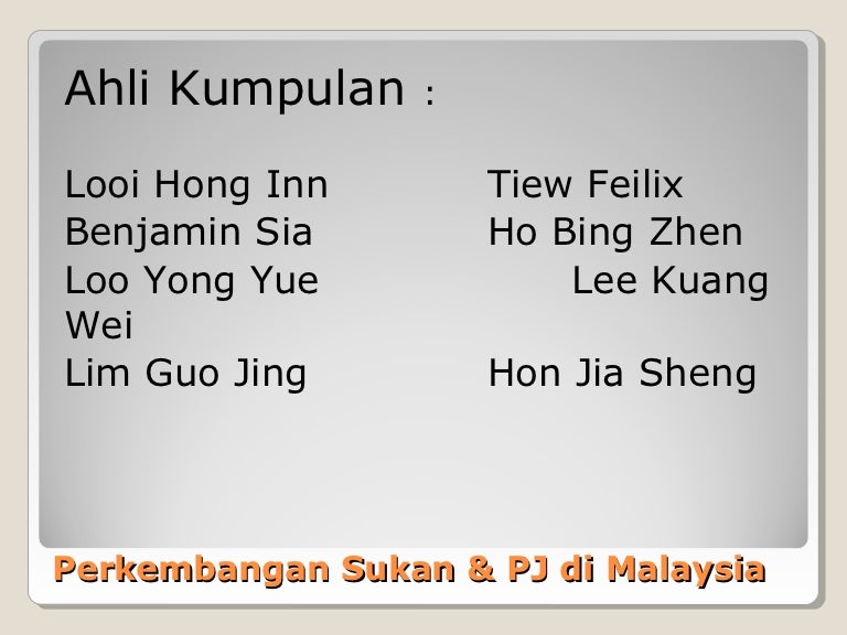 Perkembangan Pj Dan Sukan Di Malaysia