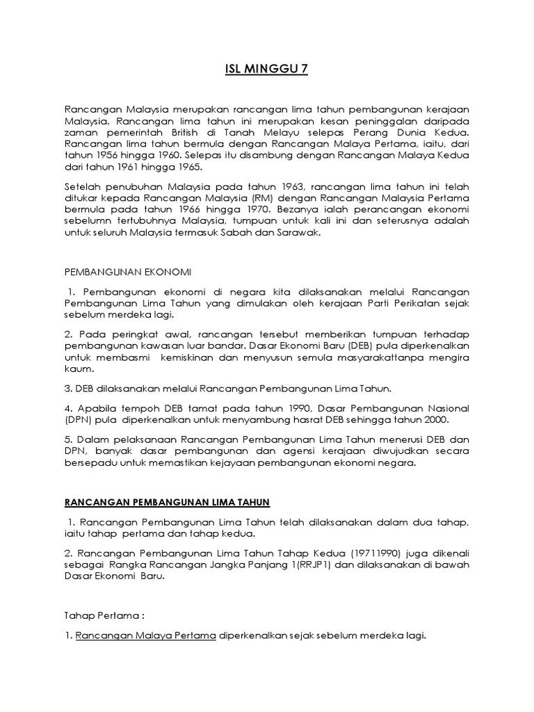 Sejarah Tingkatan 5 Bab 8 Rancangan Pembangunan Lima Tahun Tahap Pertama