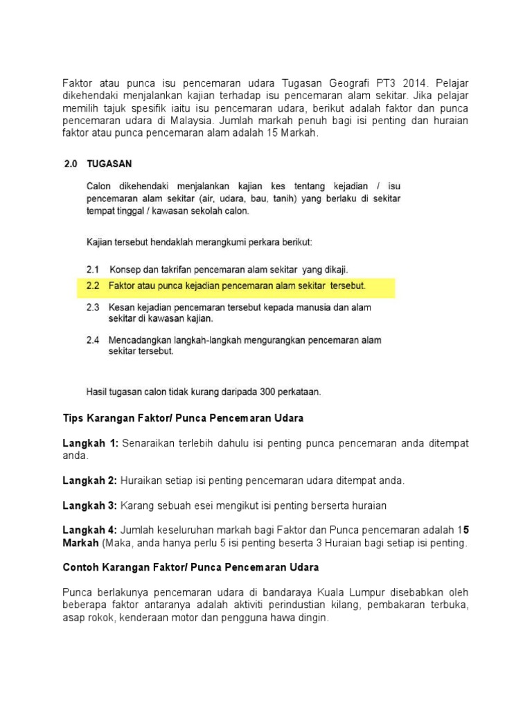 Faktor Atau Punca Isu Pencemaran Udara Tugasan Geografi Pt3 2014 Pdf