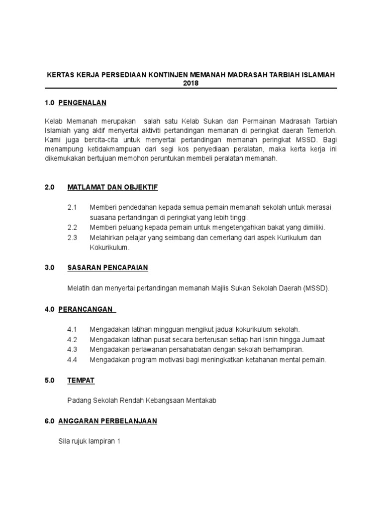 Contoh Kertas Kerja Mohon Sumbangan Sekolah