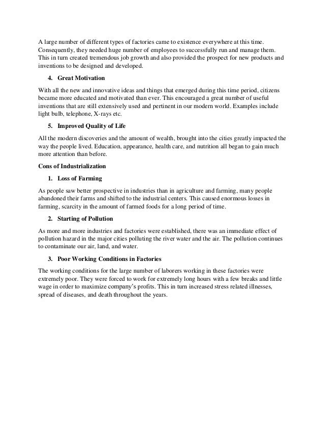 Advantages And Disadvantages Of Industrialization By Allen Pinkins